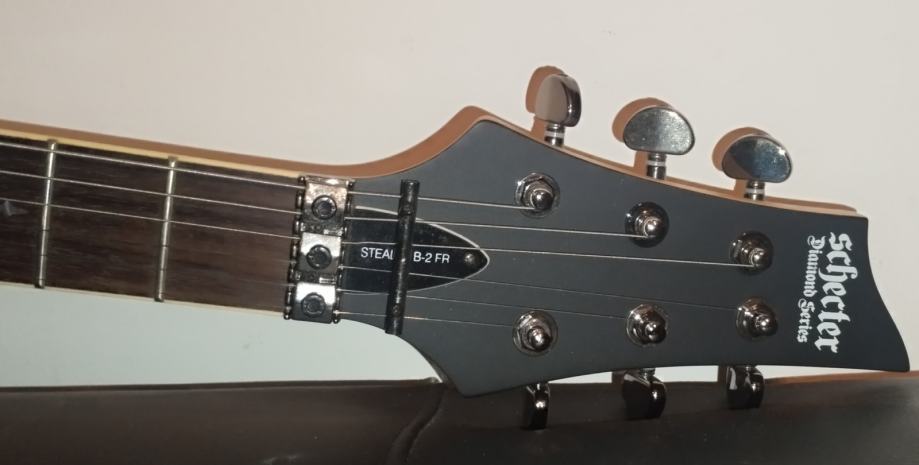 Schecter Damien B-2 FR – Basswood body, maple/rosewood neck, licensed Floyd Rose bridge, EMG-HZ H4 (Ceramic, bridge) / H4A (Alnico V, neck) humbuckers, Grover tuners. Made in China. Gigbag. Izvrsno stanje.