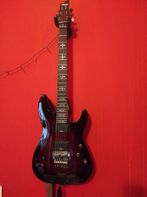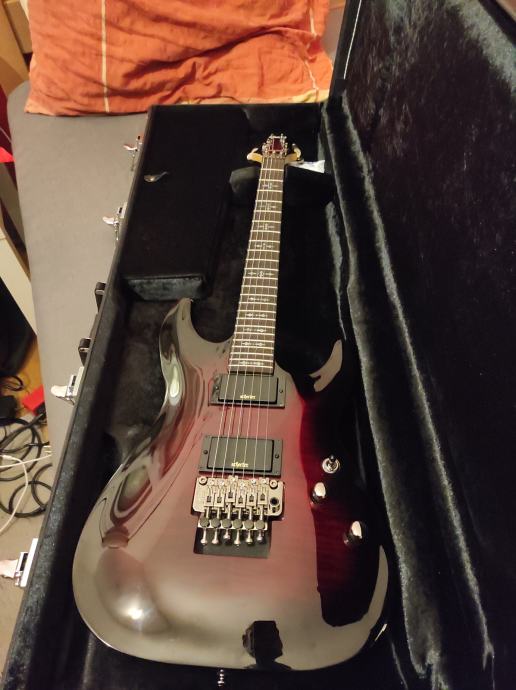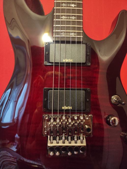 Model Name Demon-6 FR Item Number 3247 Country of Origin Indonesia Guitar Color Crimson Red Burst (CRB) Neck Tuners Schecter Fretboard Wenge Neck Material Maple Inlays Grey Pearloid Gothic Crosses Scale 25.5” (648mm) Neck Shape Thin ‘C’ Thickness@ 1st Fret- .787” (20mm)/ @ 12th Fret- .866” (22mm) Frets 24 X-Jumbo Fretboard Radius 14” (355mm) Nut Floyd Rose Special Nut Width 1.625” (41.3mm) Truss Rod 2-Way Adjustable Rod w/ 5/32” (4mm) Allen Nut Body Guitar Colors Crimson Red Burst (CRB) Hardware Color Black Chrome Top Contour Arched Top Dexterity Right Handed Construction Bolt-on Body Material Basswood Top Material Flamed Maple Binding Black 1-ply Bridge Floyd Rose Special Electronics Controls Volume/Tone/3-Way Switch Bridge Pickup Schecter Diamond Active HB-105S Neck Pickup Schecter Diamond Active HB-105S Battery Compartment 9-volt Clip-in Battery