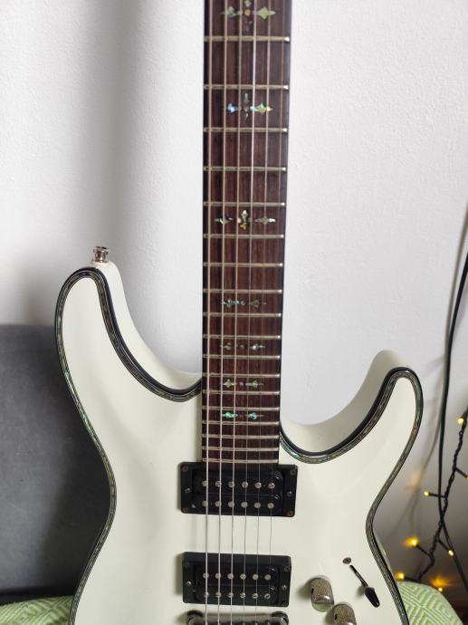 Prodajem Schecter Hellraiser električnu gitaru, bijele boje koja je s vremenom poprimila malo tamniju nijansu. Made in Korea.
