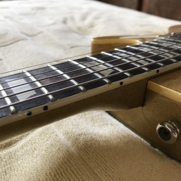Stavljeni su kompletno novi pragovi - Dunlop 6150, kompletno je setapirana i nakon toga nije svirana, svira i radi odlično.