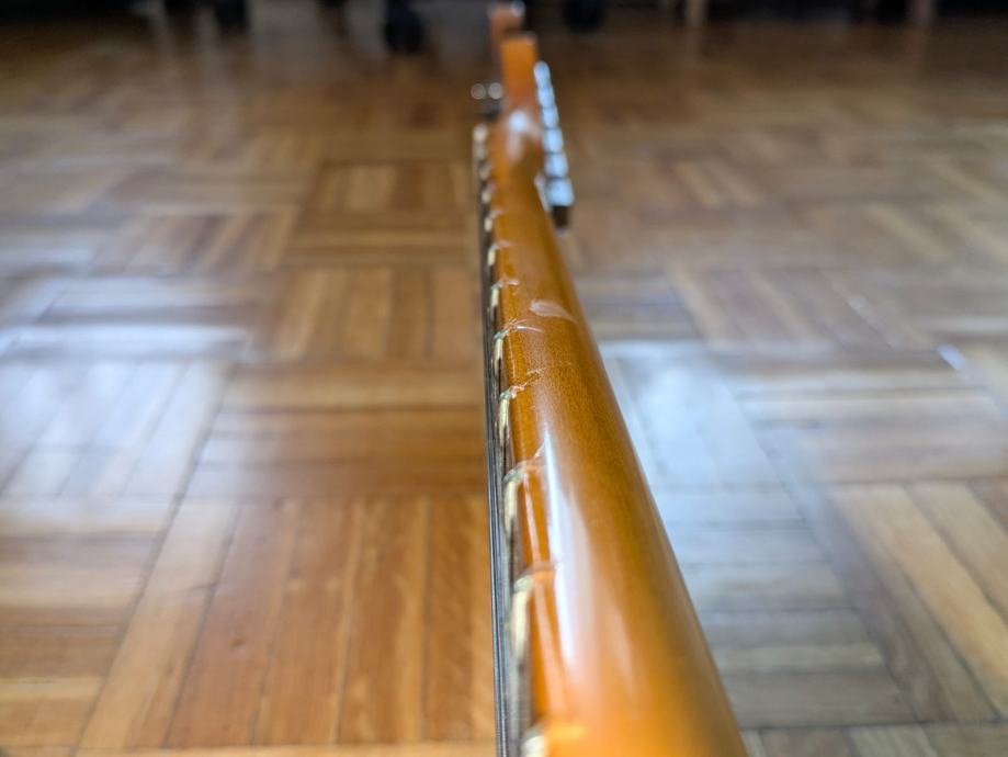 1. žica je znala zapeti ispod pragova pa je ovo bio brzi popravak - skoro se uopće ne osjeti i ne utječe na sviranje nikako.