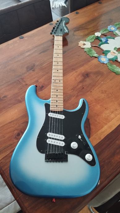 Gitara je kao nova, samo isprobana. Setapirana. Izuzetno svirljiva i rezonantna. Medium jumbo pragovi, odlicno drzi stim. Nisu vidljivi tragovi koristenja. Elektronika i konfiguracija pikapa su posebni, nije tipican strat, pogledajte malo na netu. Odlicna gitara.