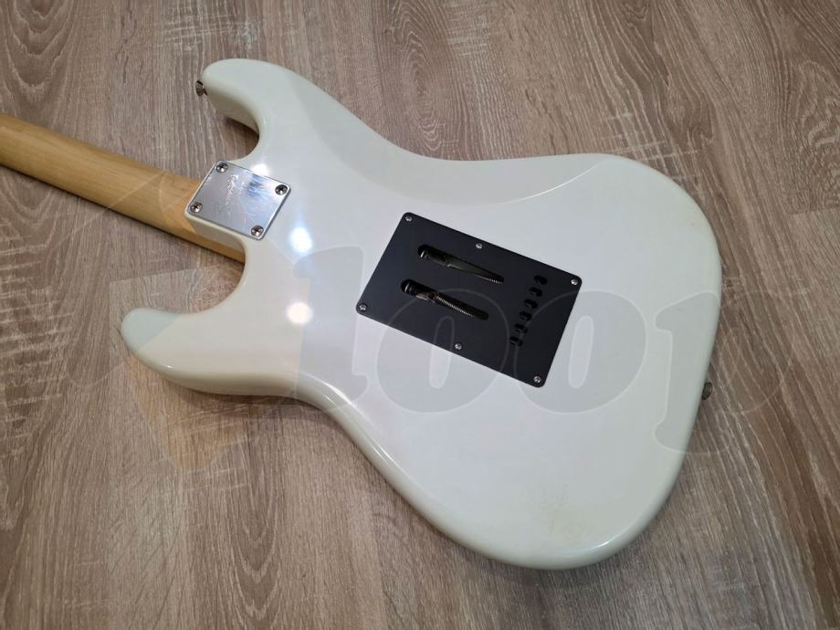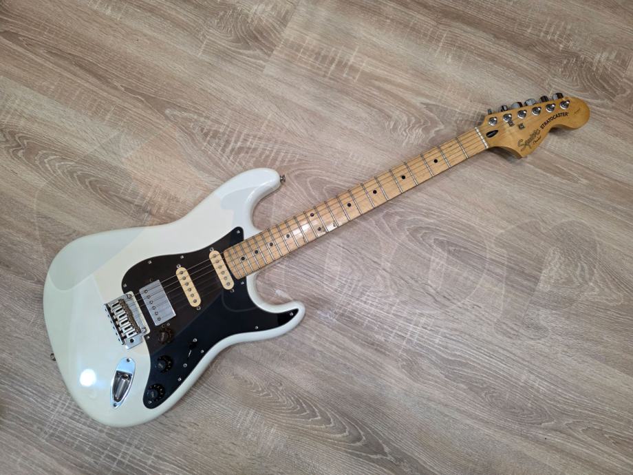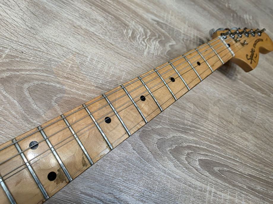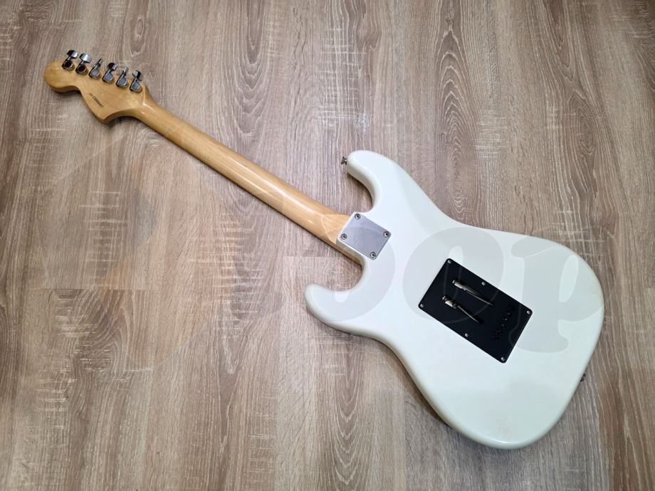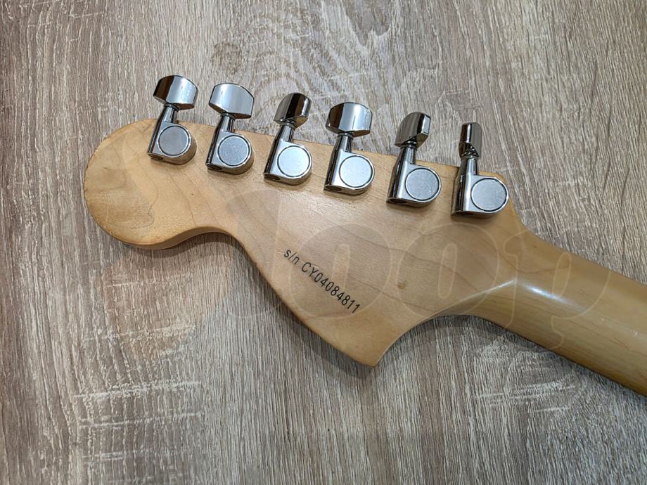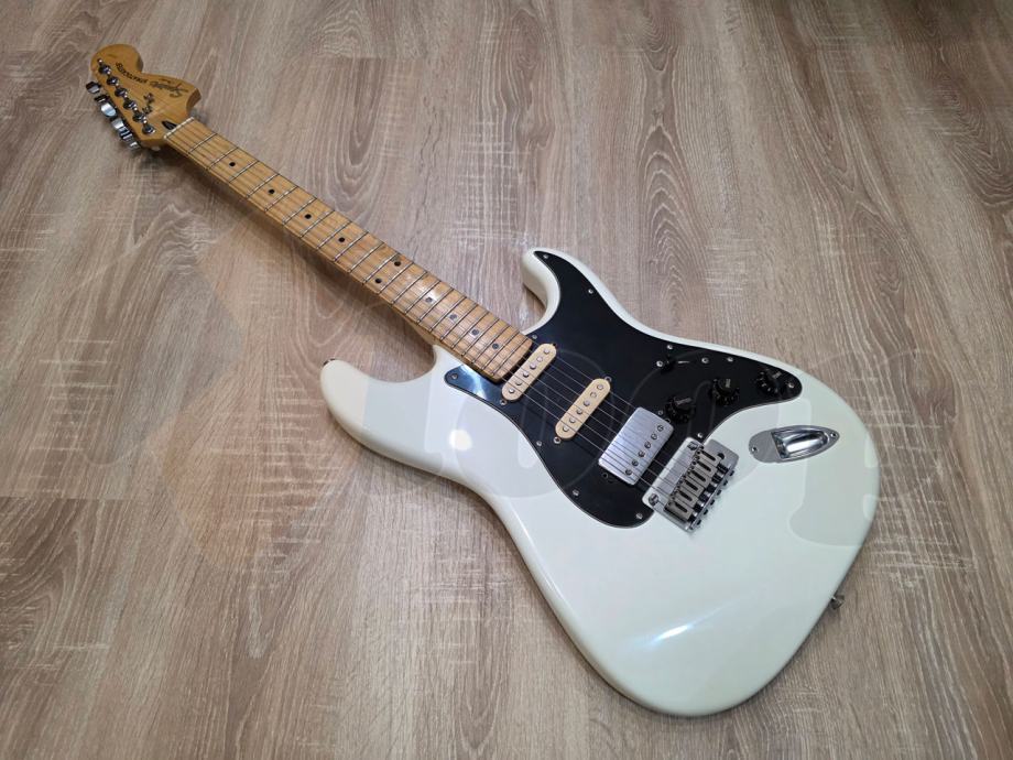 električna gitara Squier Stratocaster iz Standard serije starije produkcije, HSS konfiguracija pickupa, 22 polja, javor vrat, two point synchronized tremolo.