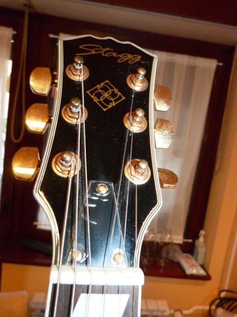 Stanje-još su zaštitne folije po njoj.Zlatni hardwer,rađen za Stagg.Za malo novaca fantastična gitara