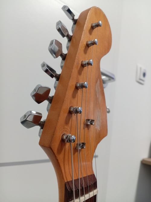Prodajem lijepu staru električnu gitaru , Stratocaster stil , stara , pa nekoliko desetljeća , sss , lijepa velika glava u stilu starih Stratocastera (1965-1981) , šipka u vratu se zateže ispod pickguarda , vidljivi tragovi korištenja , i to pošteno , vrat ravan , gitara još uvijek dobro funkcionira , koji je točno proizvođač dan danas ne znam , žice nove DAddario 10 , naradila se ali ima još potencijala u njoj . tel : 099 4722848