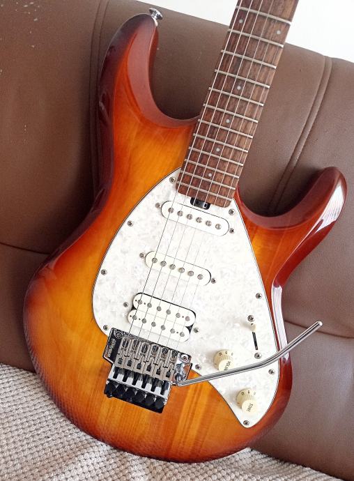 Prodajem Sterling by Music man SUB serija, električnu gitaru, SSH, boja sunburst, naknadno ugradjen Floyd rose od Wilkinson-a, ima originalnu ručicu, Guyker professional locking tuning machines i nazad između federa Esp tremolo stabilizer.