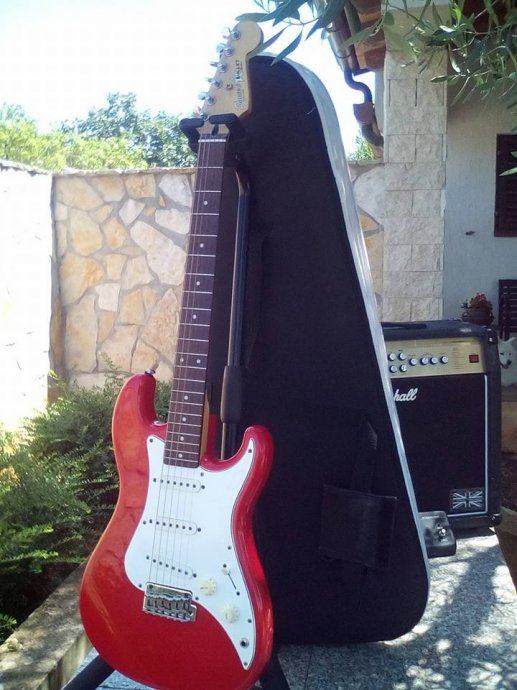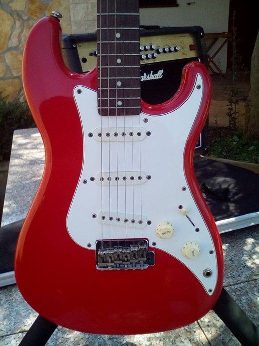 Original Squier Bullet, made in 1987. Essentially a Stratocaster with a smaller 7/8 body and a nice thin neck.