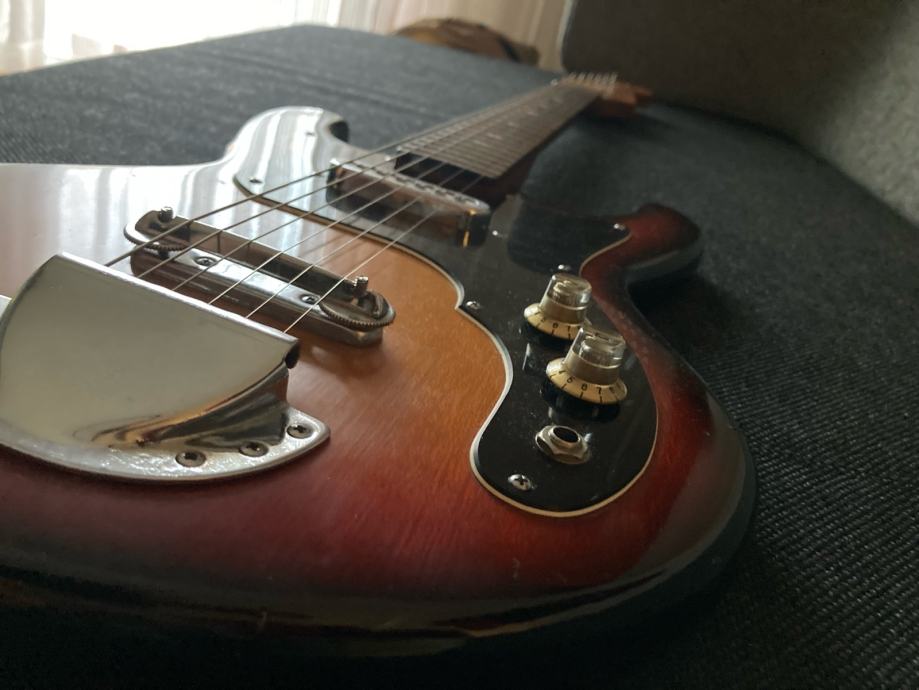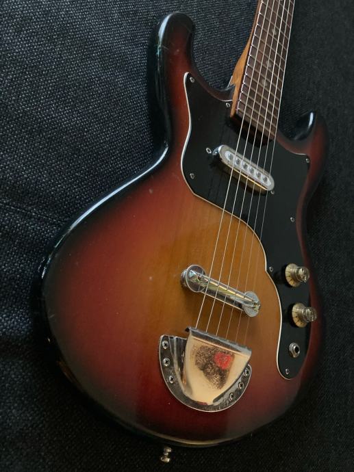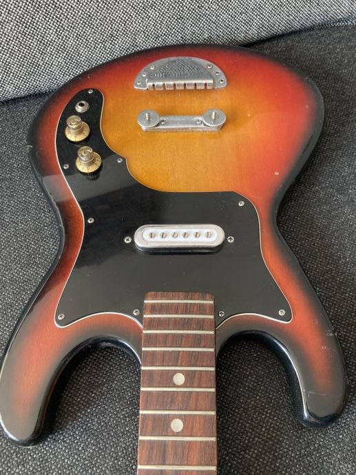 Prodajem short scale Teisco iz 70ih. Kompaktna, zabavna i izuzetno lagana (2kg). Odlična za početnike i kao travel gitara. Stanje na fotkama. Šaljem video zainteresiranima. Zamjena za git. pedale.