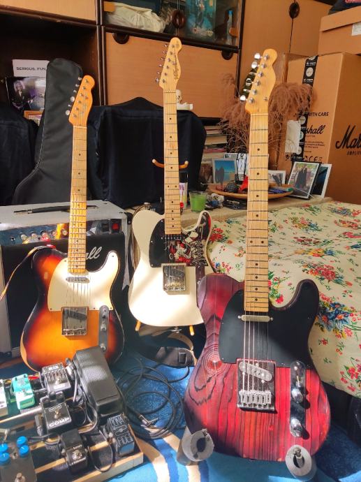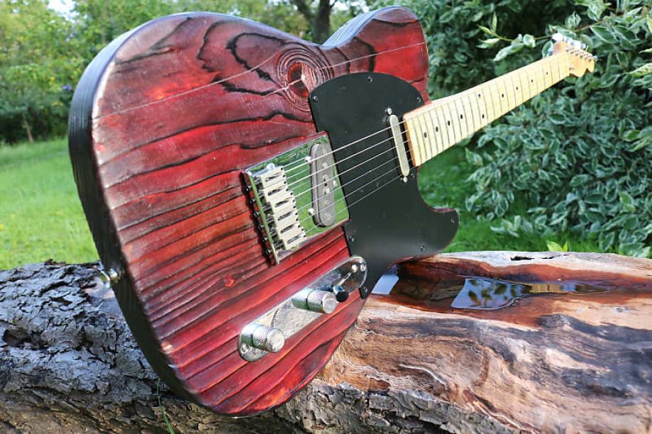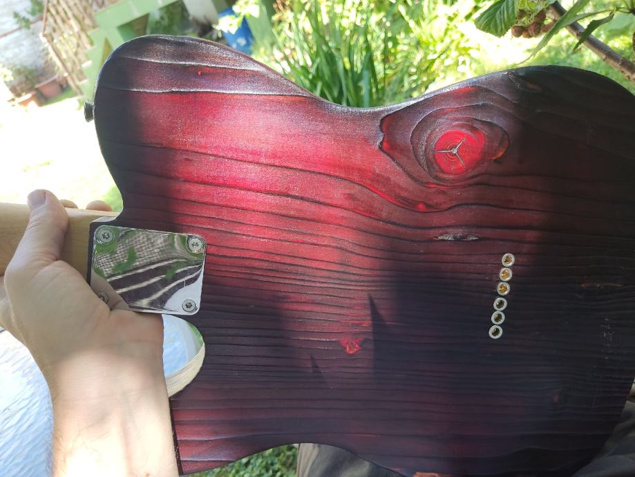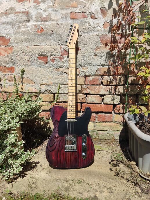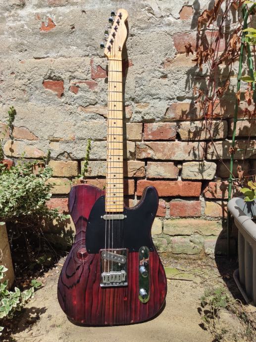 Handmade u Austriji, tijelo od bora (kao neki od ranijih Fenderovih), vrat maple, locking tuners, Q-PICKUPS - Telecaster BRIDGE 1964-68 vintage correct Custom Shop Alnico V i David Gilmour NECK Esquire 1955 vintage correct pickupi, Yakisugi ban finish - japanska metoda tretiranja tijela, finish je oil, shellac i wax.