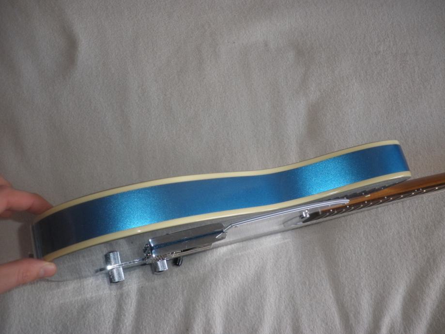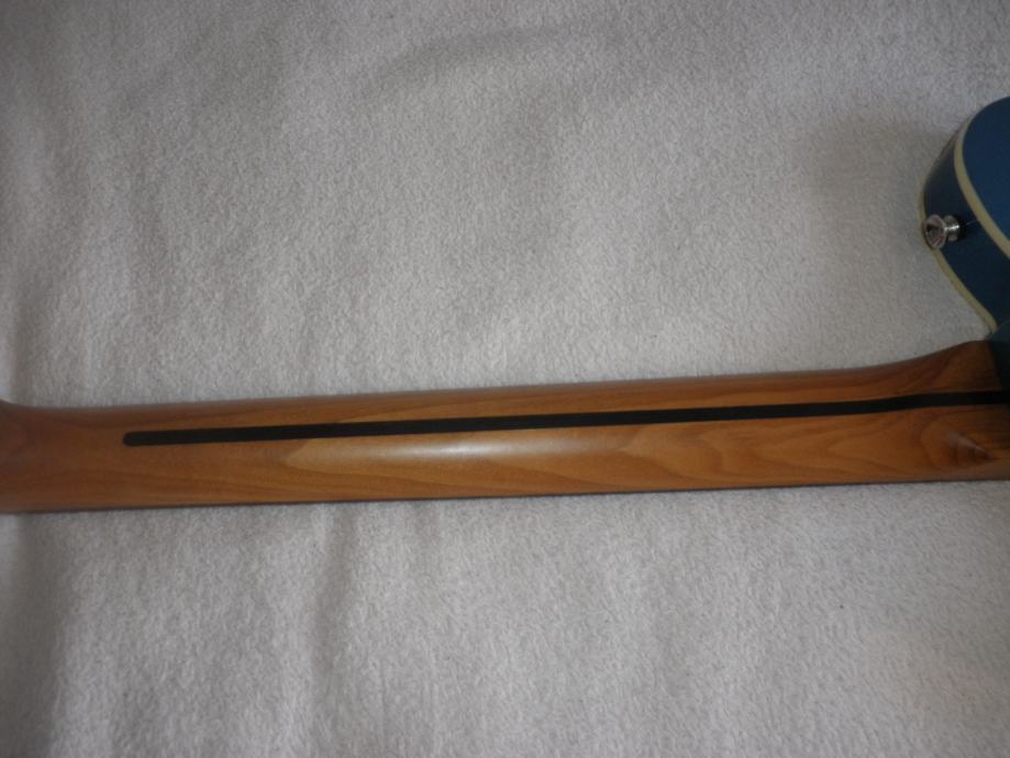 Pravi zvuk telecastera, odličan sound, ravan vrat radi bez greške; metalik plave boje.