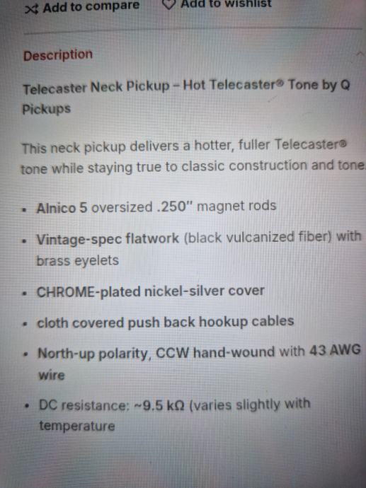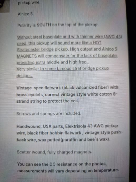 Prodajem tele set custom hot pickups, kupljene prije godinu dana od firme Q pickups. Zbog drastične promjene repertoara skidam ih s gitare i prodajem. Nabrijani (hot) pikapi kopije Duncan Hot seta, karakteristike skinute sa službene stranice. Naravno potpuno ispravni.