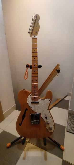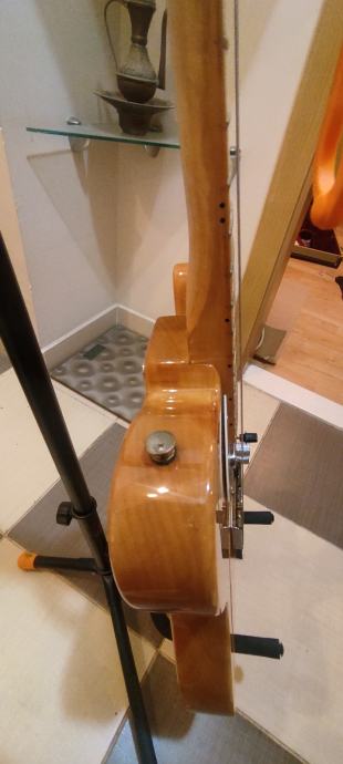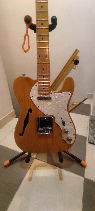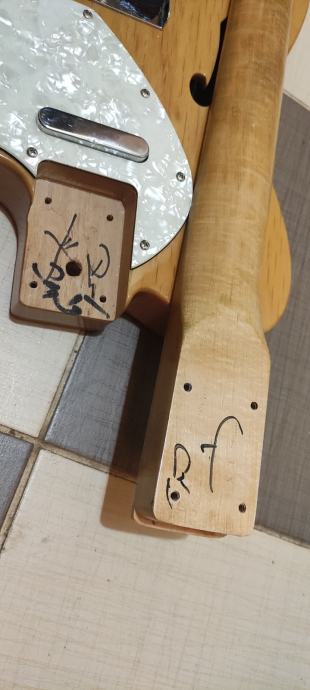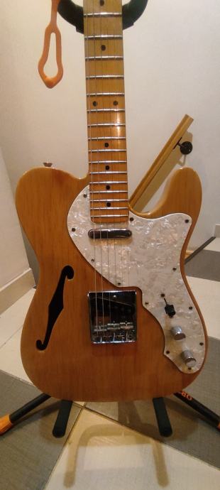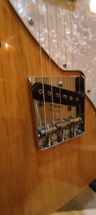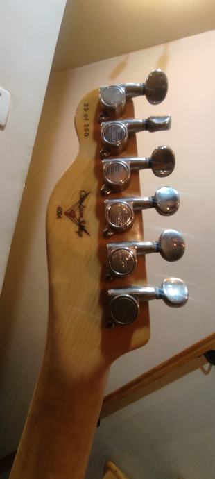 Kluson mašinice, original USA brige s mesing sedlima, neck pickup je custom ručno motan, bridge je Texas Special Custom Shop, vrat je rebrasti javor..
