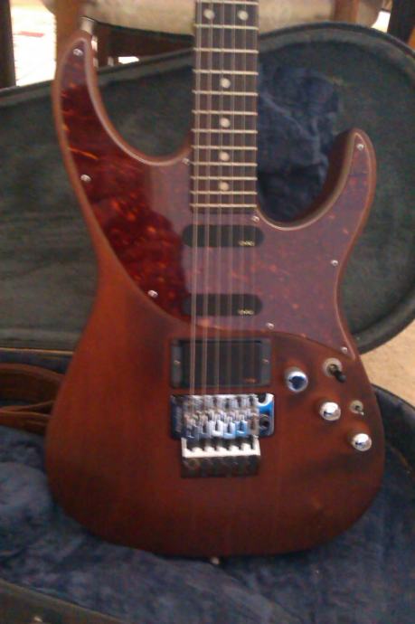 Prodajem gitaru Tom Anderson, tijelo i vrat mahagonij, natural boja, bez laka, bajcana, pickupi aktiva. Na bridgeu EMG 89, midle i neck EMG SA, mid boost, TBX. Humbucker se splitta u singl, ima prekidač da rade sve pozicije (strat i tele), Floyd Rose original tremolo (brass block), top lock, kofer za nju po mjeri.
