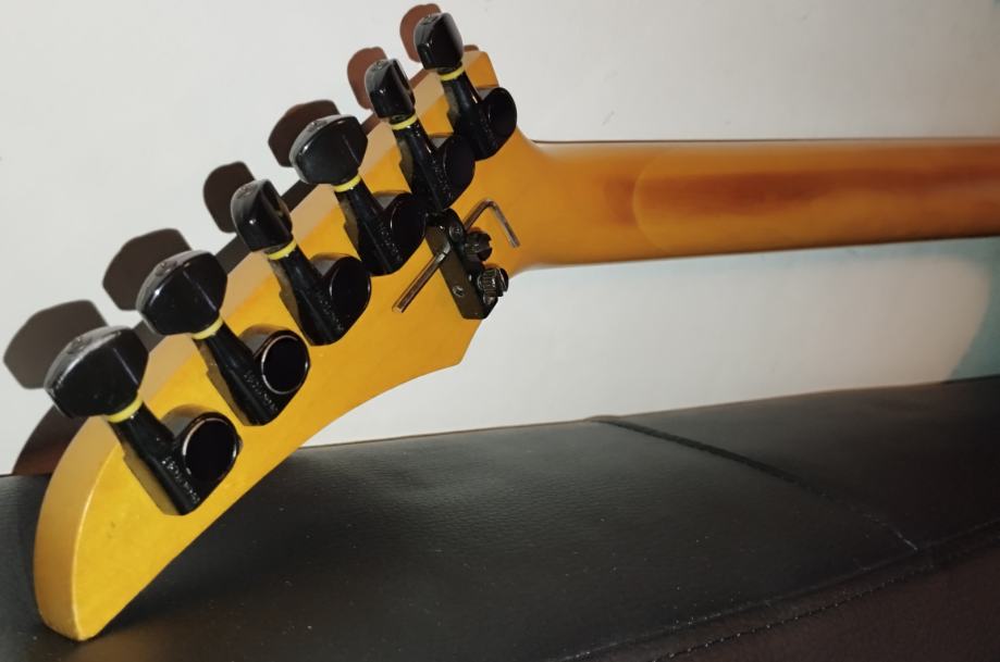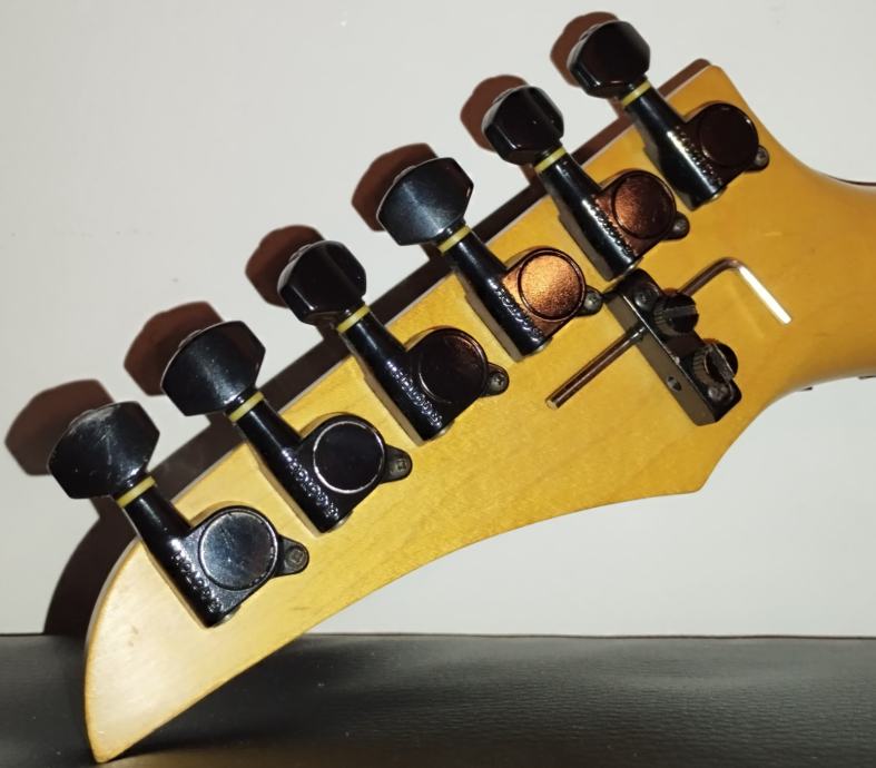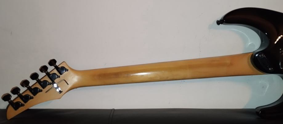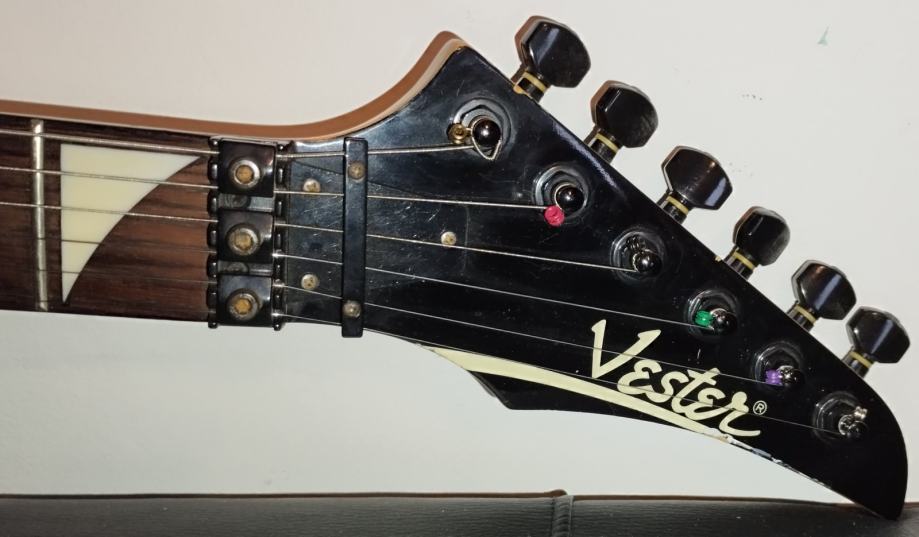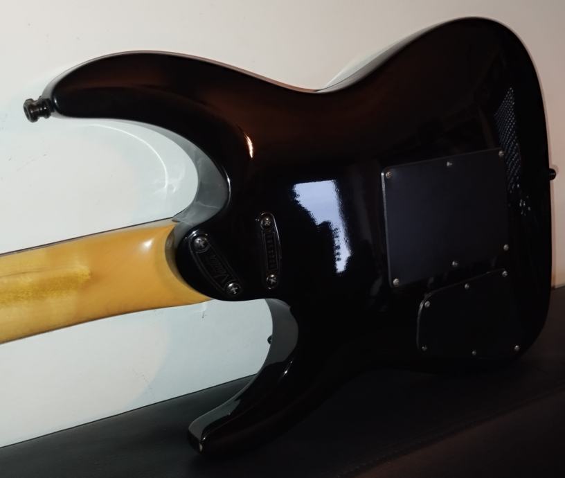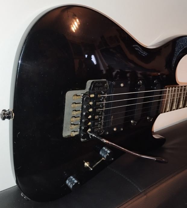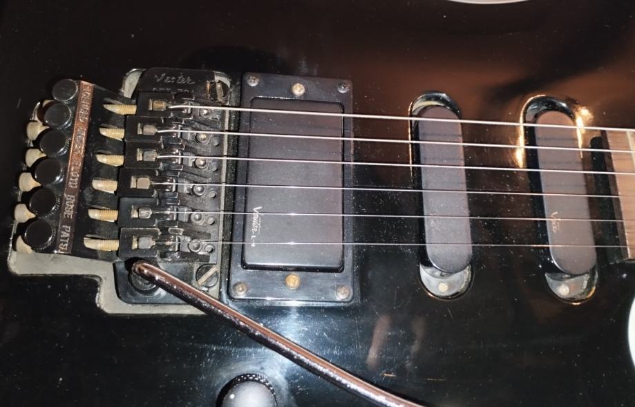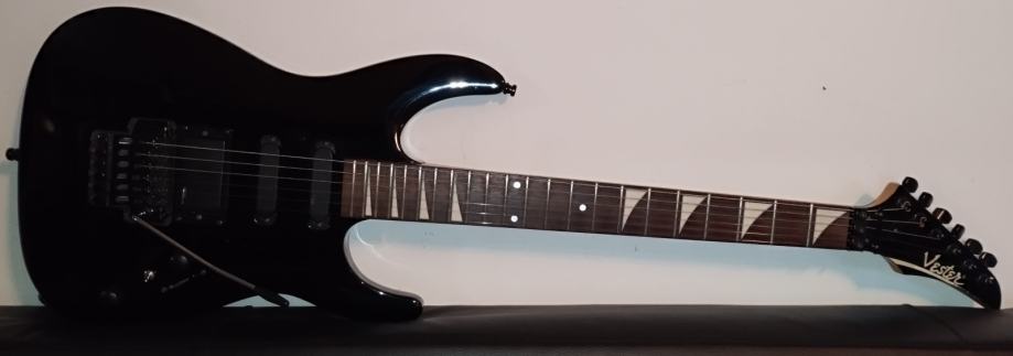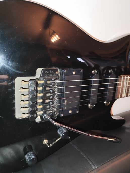 Vester JAR 1400 – 1994 god., superstrat, Hard maple neck, rosewood fingerboard, slim body, 22 freta, H-S-S silent konfiguracija pickupa (low noise high impendance pickups), Vester double locking floyd rose, Gotoh mašinice, locking strap, futrola. Made in Korea.
