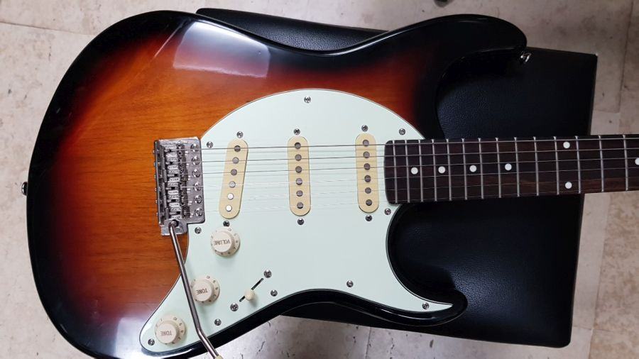 stratocaster style gitara, s tijelom od američke johe, hard maple neck, rosewood fingerboard, Wilkinson pickupi, odlično očuvana.