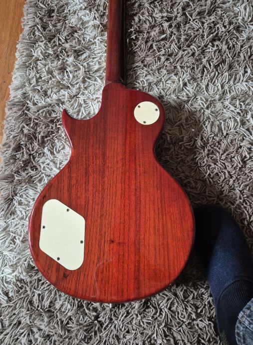 Prodajem navedenu gitaru. Gitara je u super stanju. Gitara je replika Slashovog gibsona koji je koristio na apetite for destruction. Promjenjeni su pick upovi koji su dosta bolji od originalnih. Stavljen dunlopov strap lock. Na gitari su trenutno 9-ke, ali se može lako setupirat i za deblje žice. Gitara je redovito održavana te nema potrebe za dodatna ulaganja. Nema nikakvih oštećenja na gitari. Nije korištena van studija. Gitaru je moguće probati u Virovitici i eventualno u Zagrebu po dogovoru.