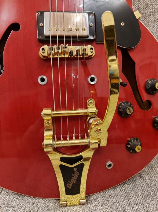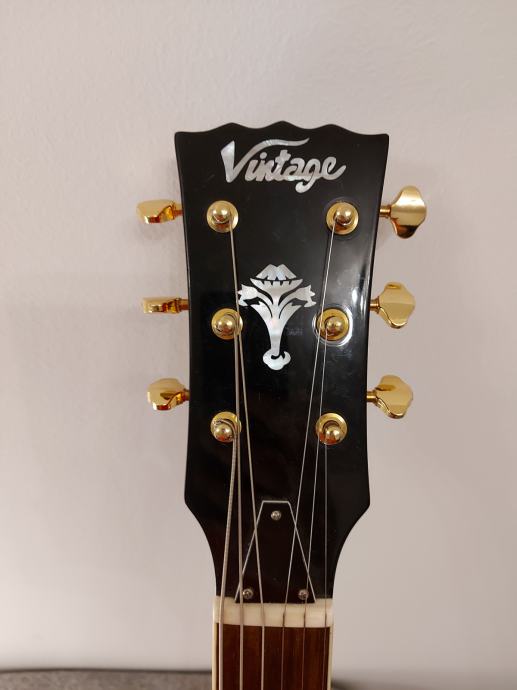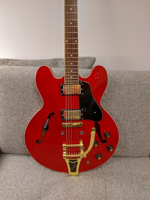 Vintage VSA535 CR. 335 oblik gitare. Stavljeni bolji vanson alnico 2 pickupi, open gear mašinice, bigsby i roller bridge. Zvuči odlično i setup je super.