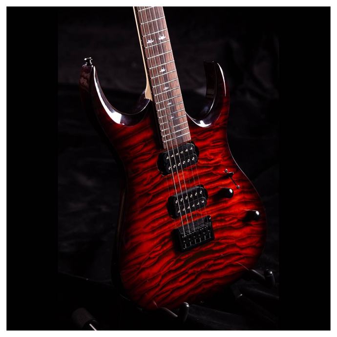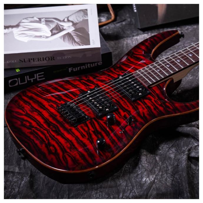 Volgoa VL6 je moderna električna gitara koja spaja atraktivan izgled i pouzdane performanse. Tijelo od mahagonija s gornjom pločom od quilted javorovog furnira pruža bogat, topao ton uz odličan sustain, dok sjajna završna obrada u upečatljivoj ljubičastoj, crvenoj ili violin sunburst boji gitari daje luksuzan i prepoznatljiv izgled.