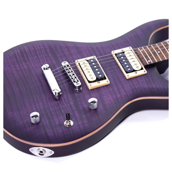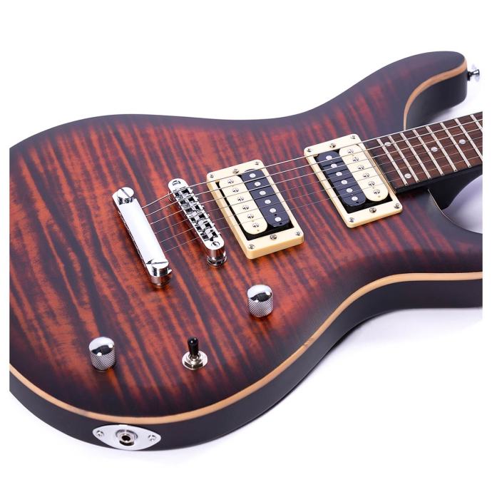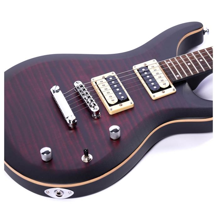 Njezin set-in vrat od mahagonija osigurava poboljšanu rezonancu i dugotrajnu stabilnost, dok glatka palisanderova hvataljka pruža poznati osjećaj za fluidno sviranje po pragovima. Gitara ima snažnu HH konfiguraciju pickupa (dvostruki humbuckeri), uparenu s 3-pozicijskim prekidačem i minimalističkom kontrolom glasnoće i tona, što vam omogućuje jednostavno podešavanje svega, od čistog zvuka do agresivnog cruncha.