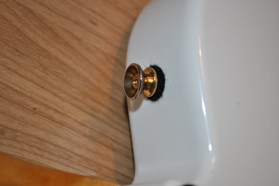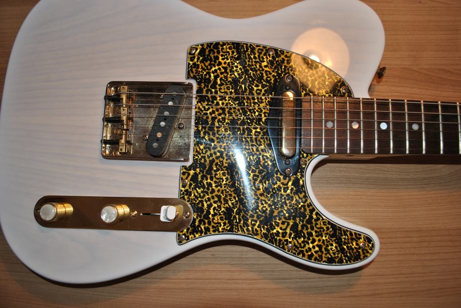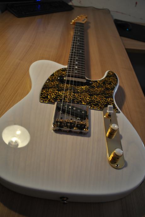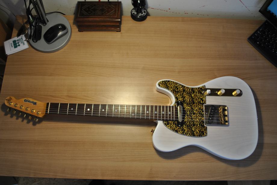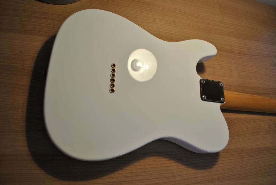 Bijeli prozirni lak, kompletni hardver na gitari je zlatne boje