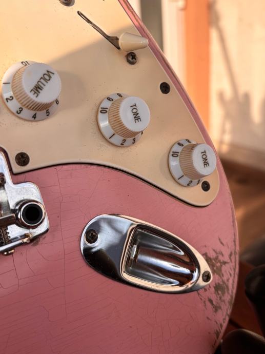 Fender Player prebojan nitroceluloznim lakom kod majstora Oscara (Navacaster) u Barceloni koji radi relic gitara. Posao je poprilicno zahtjevan i dugotrajan zbog uvjeta u kojima lak puca (vidjeti na slikama). On je posao obavio perfektno. Od prvotne gitare ostalo je samo tijelo koje je, kako sam već naveo, prefarbano.