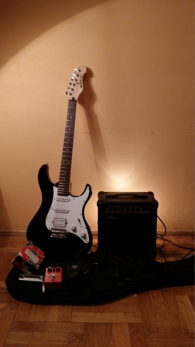 Vrlo očuvana Yamaha EG 012 , futrola, remen, tremolo ručica, kablovi, štimer + pojačalo+distorzija - 900 kn