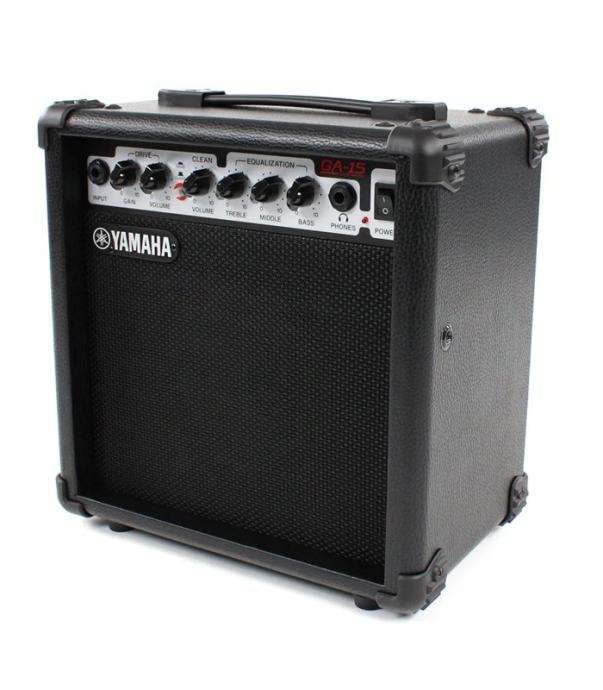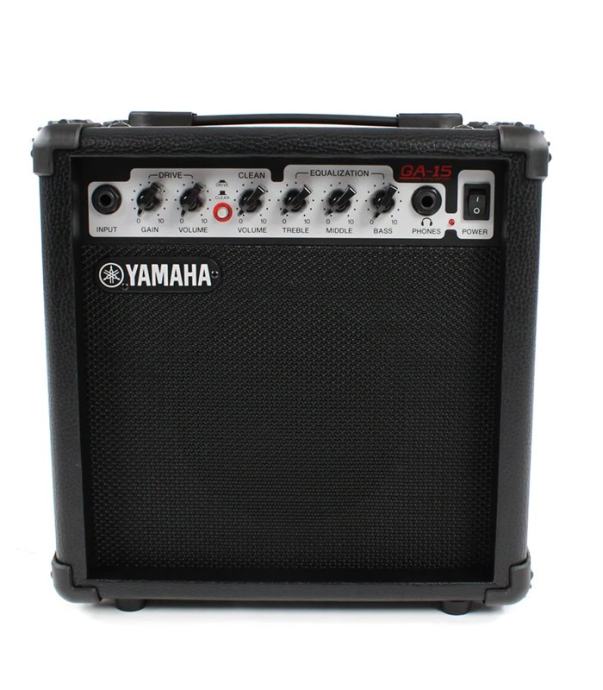 Yamaha GA15 je dvokanalno, 15W gitarsko pojačalo s 6.5" zvučnikom. Ima clean kanal s volume kontrolom i drive kanal s volume i gain kontrolama. Treble, middle i bass kontrole Vam omogućuju da fino podesite ton po želji. Pojačalo ima izlaz za slušalice ukoliko želite svirati u tišini.