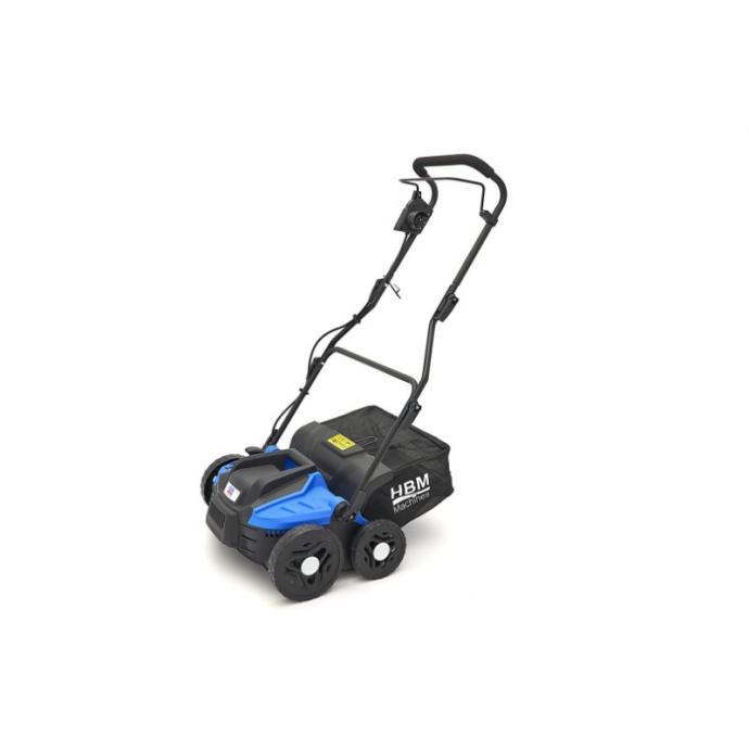 uzastopnim košenjem travnjaka nakon duljeg vremena nastaje sloj zbijenog materijala, što znači da trava više ne može pravilno disati i nedovoljno hrane može prodrijeti do korijena traveza to postoje dva rješenja:prozračivanje: izrada okomitih rezova na površini trave (vertikalna košnja) kako bi se omogućilo protok kisika i hrane natrag u korijenje trave.grabljanje / grabljanje: grabljanje sloja mrtve trave / pokošene trave između žive traveovaj praktičan lagani električni HBM škarifikator prikladan je za obavljanje obje gore navedene operacije!stroj je opremljen sa sabirnim spremnikom za grabljanje/grabljanjekanta je obješena na stražnjoj strani stroja i lako se odvaja, što olakšava pražnjenjeza prozračivanje kutija je manja / nije potrebna (ovisno o svojstvima travnjaka / vrsti trave) i može se izostavitiokretanjem svjetlećeg stroja možete jednostavno zamijeniti oštrice s brisačem otpuštanjem jedne ručne maticedubina rezanja ili dubina grabljanja podesiva je pomoću ručke na vrhu stroja (-3mm, -6mm, -9mm, -12mm i +10mm)cijelo kućište ovog električnog škarifikatora izrađeno je od polietilena (PE) otpornog na udarce i stoga je otporno na UV zračenje, čvrsto, bez hrđe i gotovo neuništivoi utikač i kabel produžnog kabela mogu se jednostavno pričvrstiti na upravljačTehnički opis: napon 230 voltisnaga 1500 Wkućište od polietilena (PE)dubina rezanja - 3 mm, -6 mm, -9 mm, -12 mm i + 10 mmširina reza 360 mm]]>