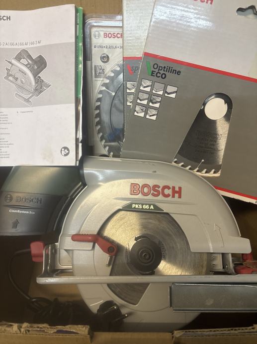 Prodajem kao nov cirkular kružna pila Bosch Pks 66A sa kutijom snaga 1600 W i za rez do 66 mm i funkcijom uranjanja, dolazi sa 4 lista pile 190mm vrijedna 100 € !