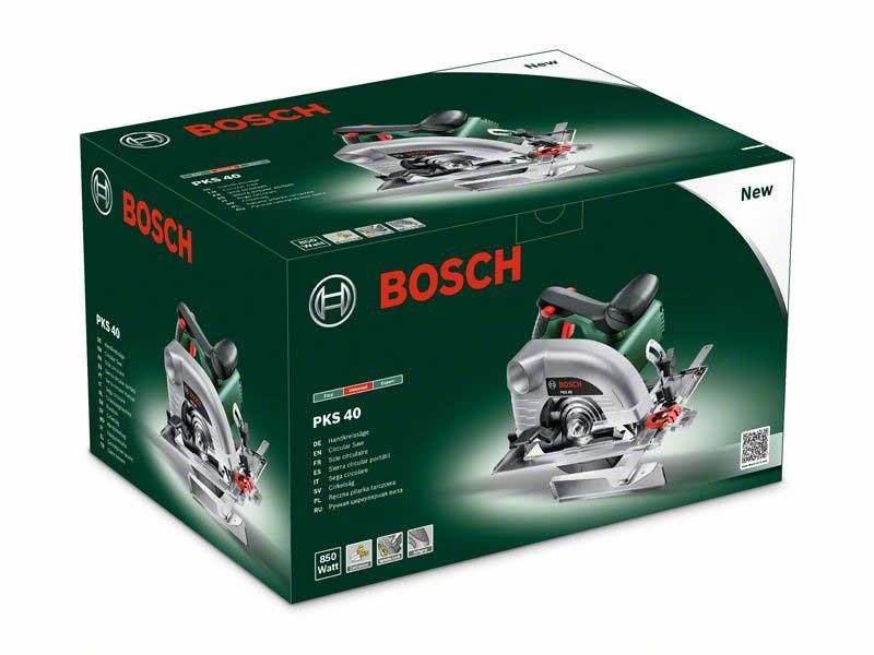 Bosch ručna kružna pila PKS 40 je kompaktan i lagan uređaj koji nudi precizne rezultate. Snažan 850 W motor omogućuje rad bez napora. S ručnom kružnom pilom mogući su uzdužni rezovi do dubine od 40 mm u drvu kao i kosi rezovi pod točnim kutom. Preciznost osigurava sustav za podešavanje dubine rezanja i mogućnost točnog prilagođavanja kuta zakošenja. Sigurno vođenje omogućuju ručke s mekanim oblogama i prozorčić CutControl.