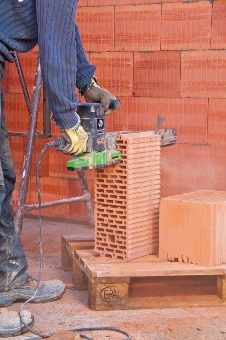 fleksibilno, brzo i stoga štedljivo rezanje perforiranih opeka u usporedbi s pilama za opeke koje je teško transportirati
