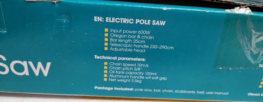 Pokreće ga električni motor od 600 W, tako da rezanje debljih trupaca nije problem.