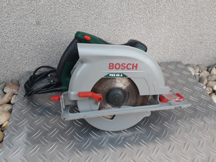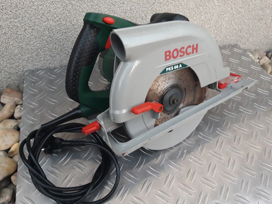 Električna kruzna pila, BOSCH PKS 66A, korištena nekoliko radnih sati. Snaga joj je 1600 Wata, robusna, i vrlo kvalitetna, dubina rezanja 66 mm. Podesava se po dubini te po kutu rezanja. Nova košta 160 eura, Prodajem ju za 70 eura. Mob 095 573 5601