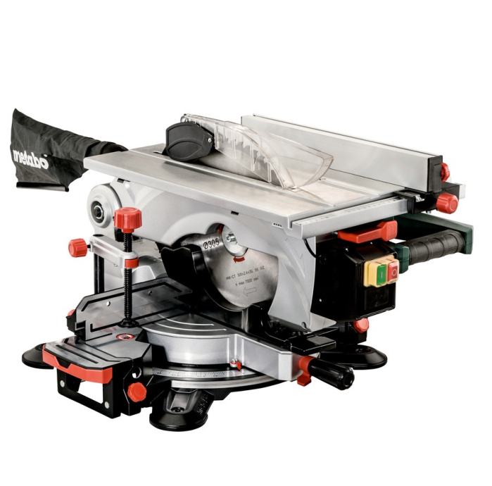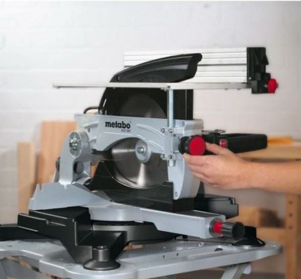 Poprečna i nadstolna pila sa dodatnom funkcijom kružne pile za ravne rezove. Brzo prebacivanje sa poprečnog na stolni rad.