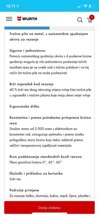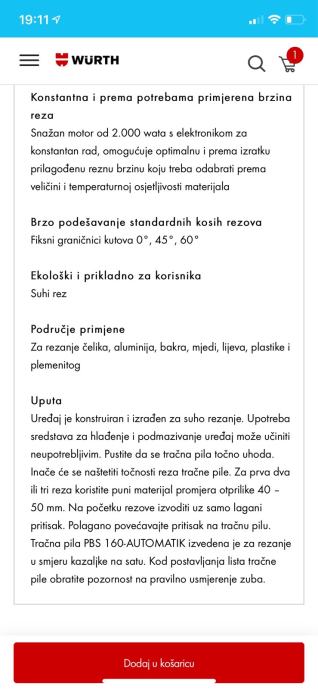 Prodajem tračnu pilu Wurth PBS 160 Automatic. Pila reže željezo, aluminij i INOX. Zakretanje do 45 stupnjeva.