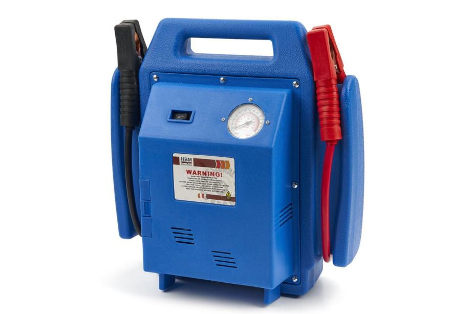 punjač, pokretač/starter, kompresor za gume, osvjetljenje sve to u jednom kompaktnom prijenosnom kućištudovoljno mali da ga uvijek ponesete sa sobom i dovoljno snažan da pokrene čak i težak kombi s potpuno praznom baterijomunutarnja baterija ove pomoćne stanice može opskrbiti vaš automobil ili motocikl startnom strujom od 450A (vrh 900A), tako će se svako vozilo ponovno pokrenuti!startna struja prenosi se kratkim debelim bakrenim kabelima i dva čvrsta priključka akumulatora koji jamče gubitak male strujeova unutarnja baterija može se puniti pomoću isporučenog adapteraugrađeni voltmetar na prednjoj strani pokazuje koliko je velika struja punjenja kojom se puni unutarnja baterijaunutarnja baterija također je izvor napajanja ugrađenog kompresora koji može isporučiti tlak od 10 baracrijevo za zrak pohranjeno je u zasebnom odjeljku, koji je dovoljno dug da se ova elektrana postavi na udaljenost veću od pola metra od gumenapuhavanje guma za motocikle i automobile postiže u vrlo kratkom vremenuadapteri su također uključeni (u zasebnom odjeljku) za napuhavanje kuglica i madracapomoću manometra na stražnjoj strani možete točno vidjeti koliki je pritisak u gumisa strane se nalazi izlaz za opremu od 12 V (tip upaljača), s kojom ova stanica može ispuniti funkciju banke napajanjasa zelenim gumbom na prednjoj strani jaka LED svjetiljka može se uključiti i isključiti. Crveni gumb nalazi se kako bi provjerio stanje interne baterije i utvrdio treba li je već napunitiova elektrana može vas spasiti od mnogih problematičnih situacija i vrlo je zgodan i prenosiv uređaj koji uvijek možete nositi u prtljažnikuTehnički opis: napon 12 voltinapajanje 12 voltikapacitet 20 Ahvršna struja 900 AMPSvisina 370 mmširina 345 mmdubina 150 mm]]>