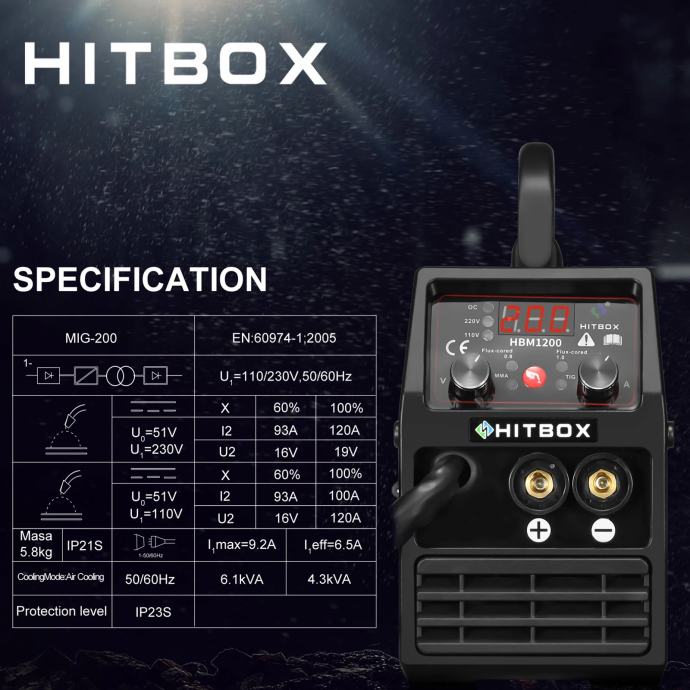 HITBOX 120A MIG zavarivač ima tri funkcije MIG / MMA / LIFT TIG