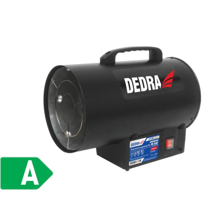 Plinska grijalica DED9941A je uređaj namijenjen za unutarnju upotrebu. Koristi se za grijanje nestambenih prostorija kao što su radionice, skladišta, proizvodne hale, staklenici ili tijekom renoviranja i građevinskih radova. Plinski top za grijanje se napaja plinom propan-butan (G30). Uređaj se smije koristiti samo u prostorijama s učinkovitom ventilacijom. Metalno kućište se ne zagrijava čak ni tijekom dugog rada. Toplinska zaštita osigurava siguran rad. Set uključuje namjenski reduktor i crijevo. Čvrsta ručka olakšava nošenje i transport. Ovaj proizvod ne može služiti kao osnovni izvor grijanja. Snaga: 15kW energetski razred: A max. potrošnja goriva 1,07 kg/h protok zraka 300m3/h toplinska zaštita metalno tijelo uključeno u isporuku.: reduktor 0,7 bar/crijevo 1,5m