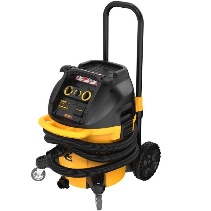 Industrijski usisavač DeWalt DWV905M KIT je napredni usisavač koji će vam omogućiti da osigurate odgovarajuće radne uvjete. Uklanja razne vrste prašine koje se pojavljuju tijekom renoviranja ili gradilišta. Sustav filtracije klase M Građevinski profi usisavač DeWalt DWV905M je model koji pruža klasu filtracije M. To znači da učinkovito upija mineralnu prašinu koja nastaje pri radu s betonom, zidom, žbukom ili čak drvom. Zahvaljujući tome, stvorit ćete optimalne radne uvjete. Velika prednost ove opreme je što se može koristiti i na suhom i na mokrom. Ovaj uređaj jamči učinkovitost čak iu teškim uvjetima. Ima mogućnost podešavanja snage usisavanja tako da možete slobodno podešavati snagu ovisno o površini koja se čisti. Osim toga, opremljen je automatskim sustavom za čišćenje filtera, koji sprječava nepotrebno začepljenje. To jamči nesmetan rad i konstantnu usisnu snagu čak iu teškim uvjetima gradnje. DeWalt DWV905M je mokro/suhi usisavač koji je dodatno opremljen utičnicom od 230 V. To vam omogućuje spajanje električnog alata na usisavač. Usisavač s funkcijom autostop uključit će se kada pokrenete alat i isključiti se nekoliko sekundi nakon završetka rada. Odgođeno isključivanje pomaže u uklanjanju prašine iz cijevi usisavača. Štoviše, zahvaljujući velikim kotačima i teleskopskoj ručki, uređaj možete slobodno prenositi s jednog mjesta na drugo, pa čak i svladati neravne podove. Klasa filtracije M - uklanja nečistoće poput prašine