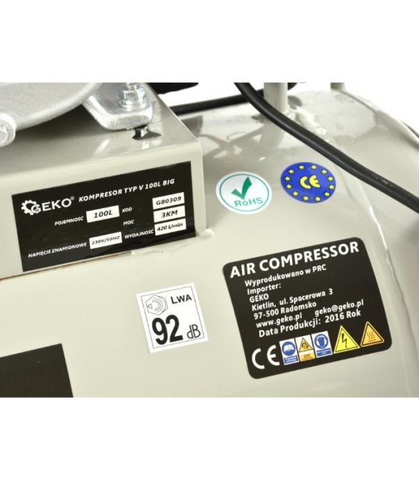GEKO G80309 100L zračni kompresor z oljem mazan V-Twin 9 bar 390 L/min