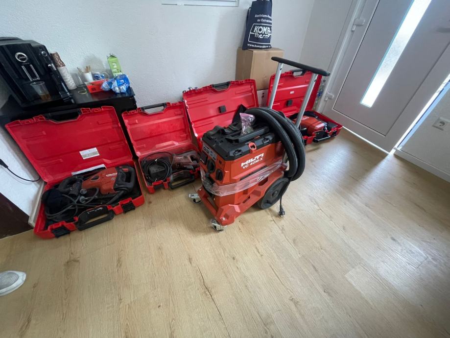 Dva veca pikamera i usisivac nikad koristeni, jedan manji pikamer koristen par puta, sabljasta pila takoder malo koristena. Alat kosta novi tocno 7000 eura,bez pdv, na internet stranicama od hiltija se moze provjerit. Samo ozbiljni kupci, na poruke ne odgovaram. CIJENA FIKSNA I ODNOSI SE NA CIJELI KOMPLET, POJEDINACNA PRODAJA NIJE OPCIJA.