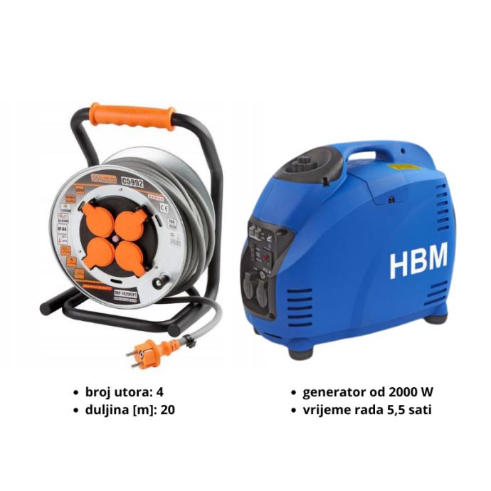 Kabelska motalica 3x2,5 20M + generator električne struje od 2000 W sn