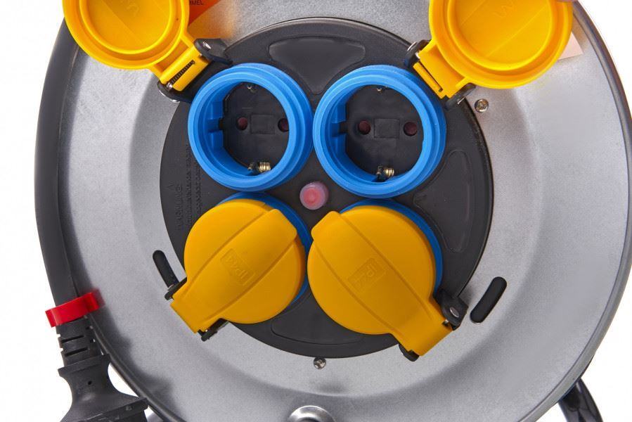čvrsta motalica za kabel s 4 utičnicečvrsti metalni kolutIP standard: IP44maks. snaga: 230V ~ 1100W (namotano)maks. snaga: 230V ~ 3200W (nenamotano)utičnice u položaju 45°uključuje ručku i gumb za roll-upuključuje zaštitu od prenaponauključuje osvijetljeni sigurnosni prekidačdužina kabela: 25 metarakabel: H05VV-F - 3G1,5 mm2slika simbolična, isporučuje se 1 komad motalice]]>