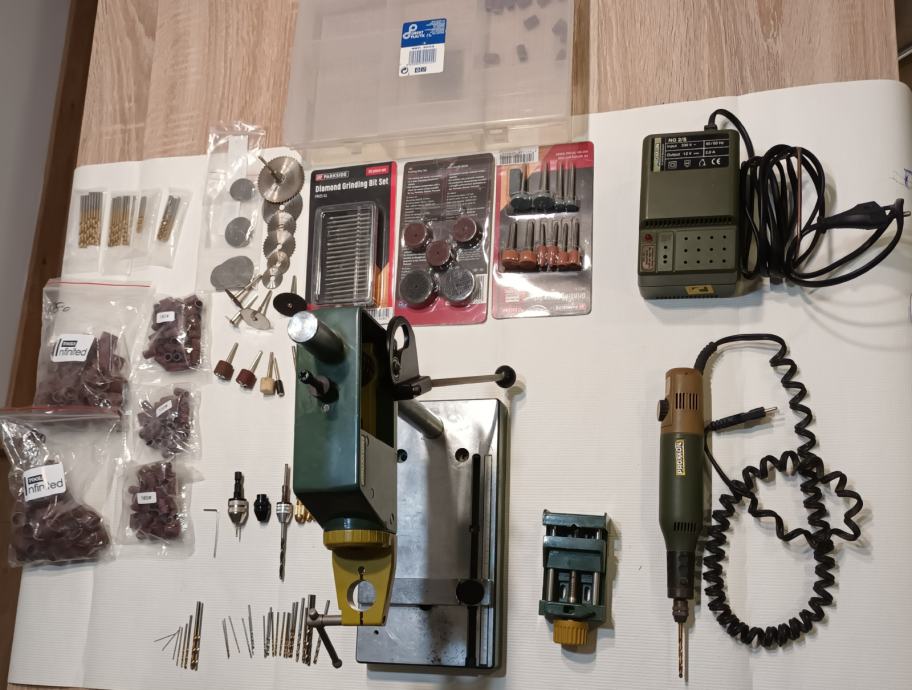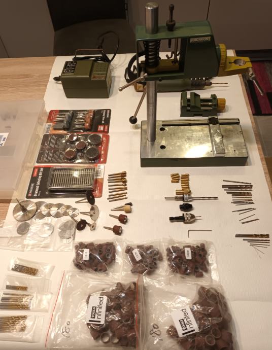 Proxxon set sa slika korišten stanje ispravano prodaje se u kompletu vidljivom na slikama, cijena je za sve, cca 250 kom.