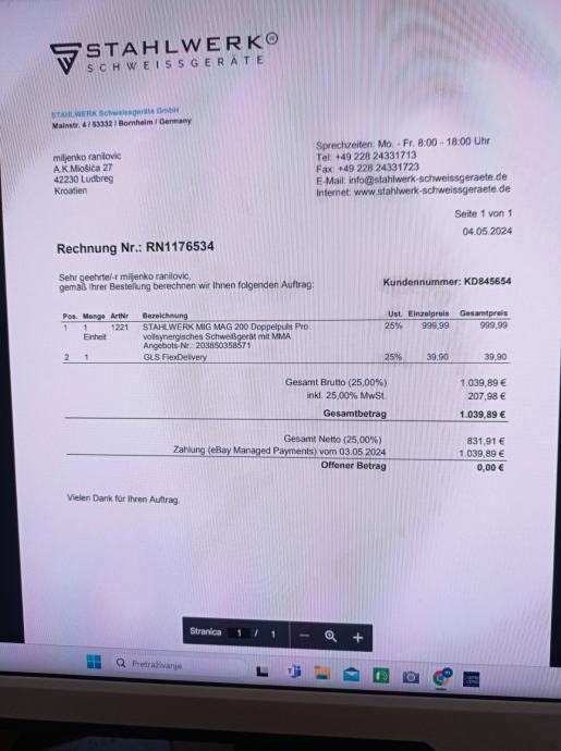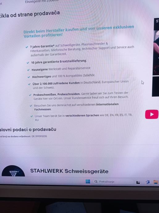 Aparat je težak 17 kg bez žice, ima garanciju 7 godina, sve je novo, imam originalnu ambalažu i račun direktno od STAHLWERK-a iz NJEMAČKE.)
