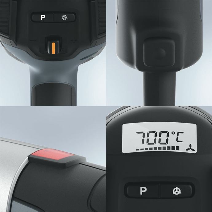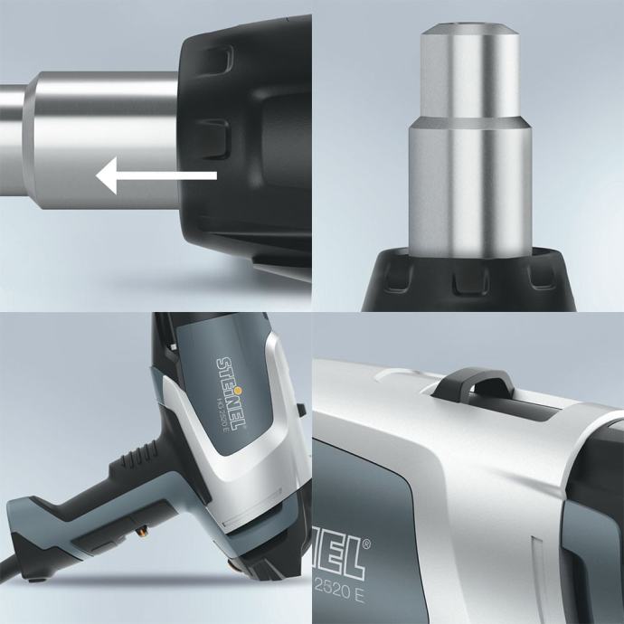 Aparat HG 2520 E za vrući zrak elektronički kontrolirani s 2.300 W, joystickom kontrolirane temperature 50-700 °C u 65 koraka, te kontrolom protoka zraka 150 – 500 l/min. Pogodan za građevinska područja sa dodatnom zaštitom od vlage i prašine.