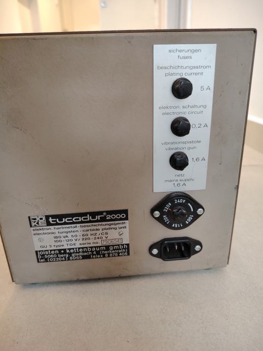 Prodajem aparat za nanošenje volfram oksida za poboljšanje mehaničkih svojstava za razne alate i obratke. Regulacija debljine nanošenja. Nožna predala za upravljanje. Može se koristiti za precizno reparaturno nanošenje metala. U izvrsnom je stanju. Prodaje su u 10% cijene novog uređaja u trgovini. Cijena je fiksna uz mogućnost dostave.