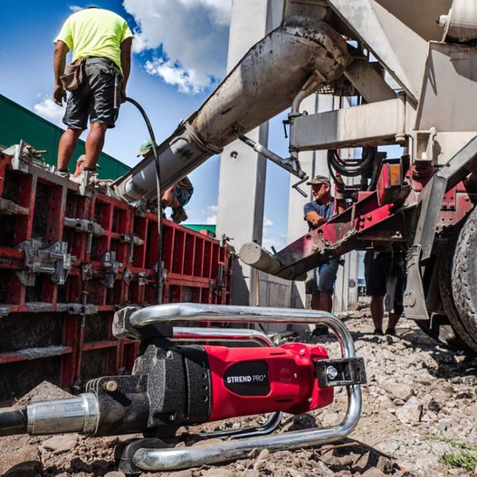 - Električni potopni vibrator Strend Pro uklanja mjehuriće zraka iz betona, što rezultira njegovim zbijanjem.