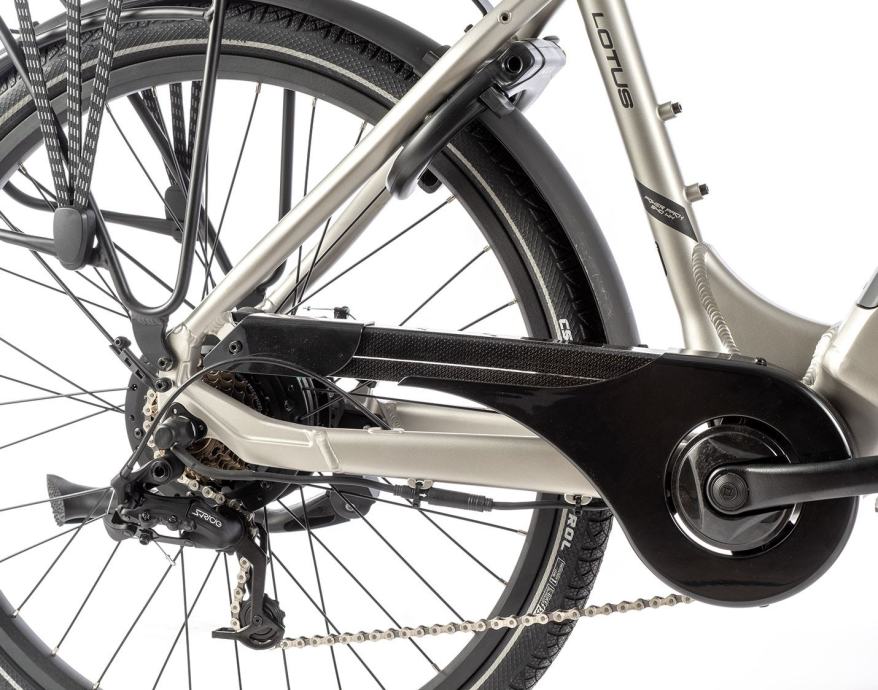 LEADER FOX LOTUS model 2023 je kvalitetan gradski električni bicikl elegantnog dizajna sa stražnjim pogonom, integriranom, aluminijskom ramom, opružnom prednjom vilicom, disk kočnicama i kotačima dimenzija 26“