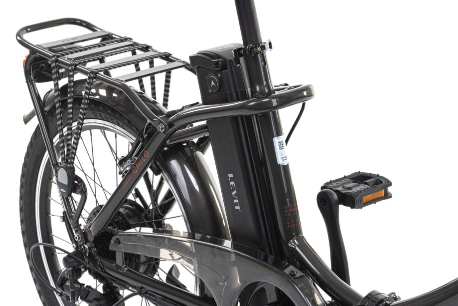 Naš mali Apache Levit Chilo 3 sa velikim mogućnostima. Bez alata sklopiv u nekoliko trenutka sa minimalnim mjerama, sklopljen samo 86x70x40 cm. Svestran, možete ga nositi posvuda sa sobom, na brodu, u autu, vlaku, autobusu, tramvaju… Gradski električni sklopivi bicikl sa dometom od 50-90 km. Duboki ulaz za osobe koje imaju probleme sa dizanjem noge. Aluminijski okvir (16″)i kotače veličine 20″ omogućuje ugodnu i sigurnu vožnju. Sa ugrađenom baterijom od 36V/13Ah ( 468Wh) je domet od 40- 90 kilometera uz pomoć vozača. Maksimalna brzina elektromotora je 25km/h. Motor Levit HD Silent je ugrađen na stražnjem kotaču. 7 brzina Microshift RD-M21S mjenjač precisno prebacuje brzine i na velikim uzbrdicama. Display za provjeru stanje baterije je izvedeno u LED tehnologiji. Prednje i stražnje svijetlo instalirano i spojeno na bateriju bicikla te se upravlja putem displeja. Lula volana sa više mogućnosti podešavanja. Jamstvo na bicikl je 2 godine.